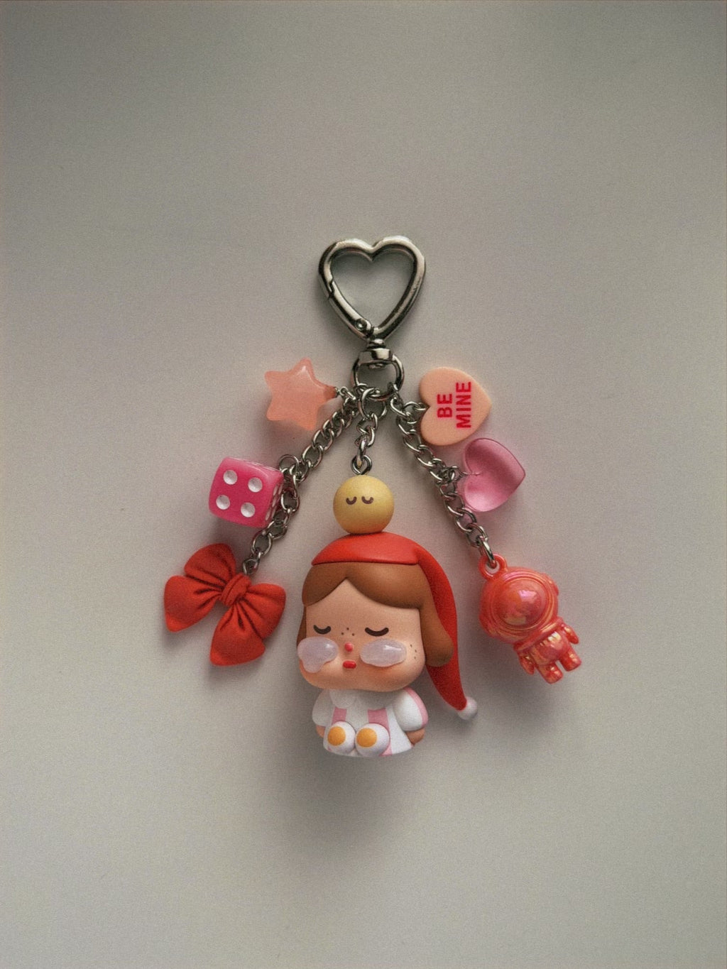Figurinha mini Crybaby chorando para a lua feita à mão no chaveiro mais fofo.